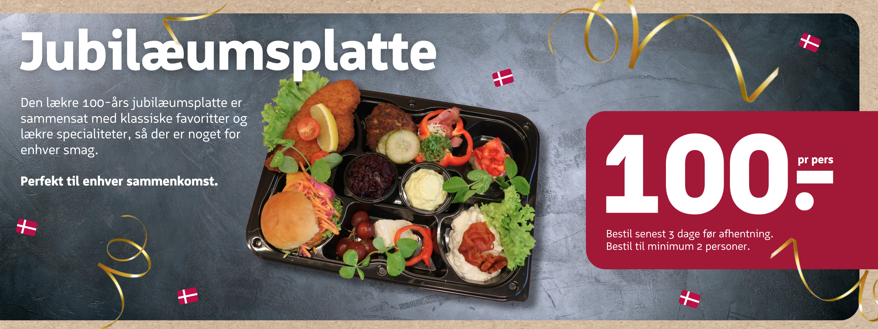 Den lækre 100-års jubilæumsplatte er sammensat med klassiske favoritter og lækre specialiteter, så der er noget for enhver smag.